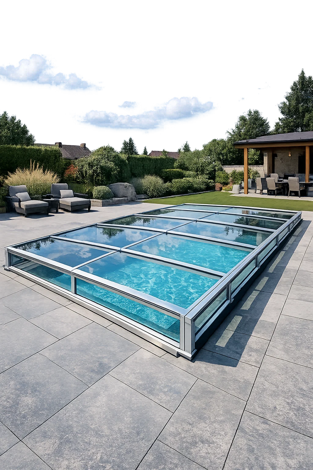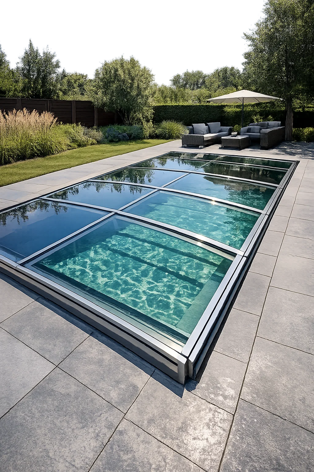 - Partial glass covers: Cover part of the pool and are used to achieve a balance between safety and overall aesthetics.