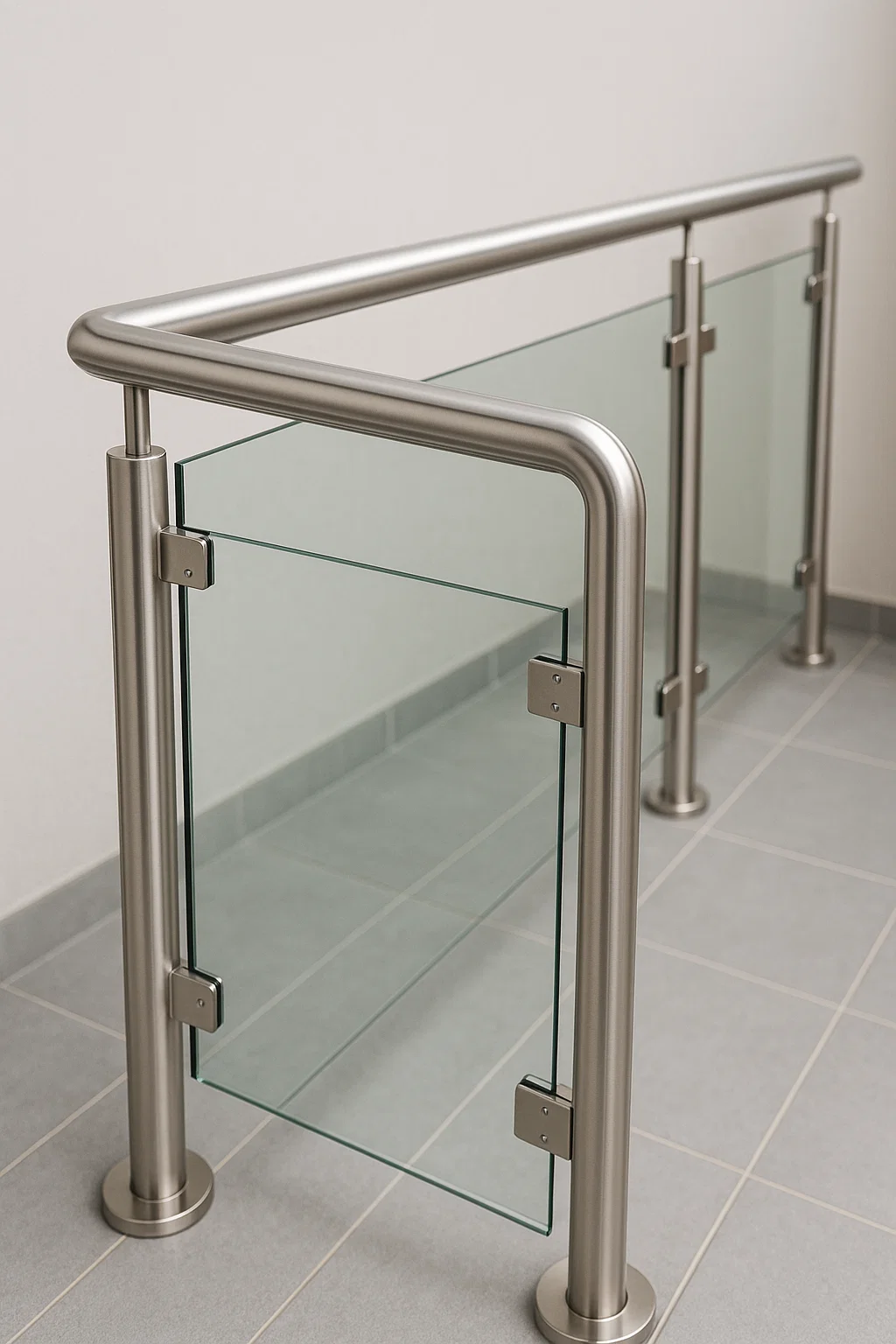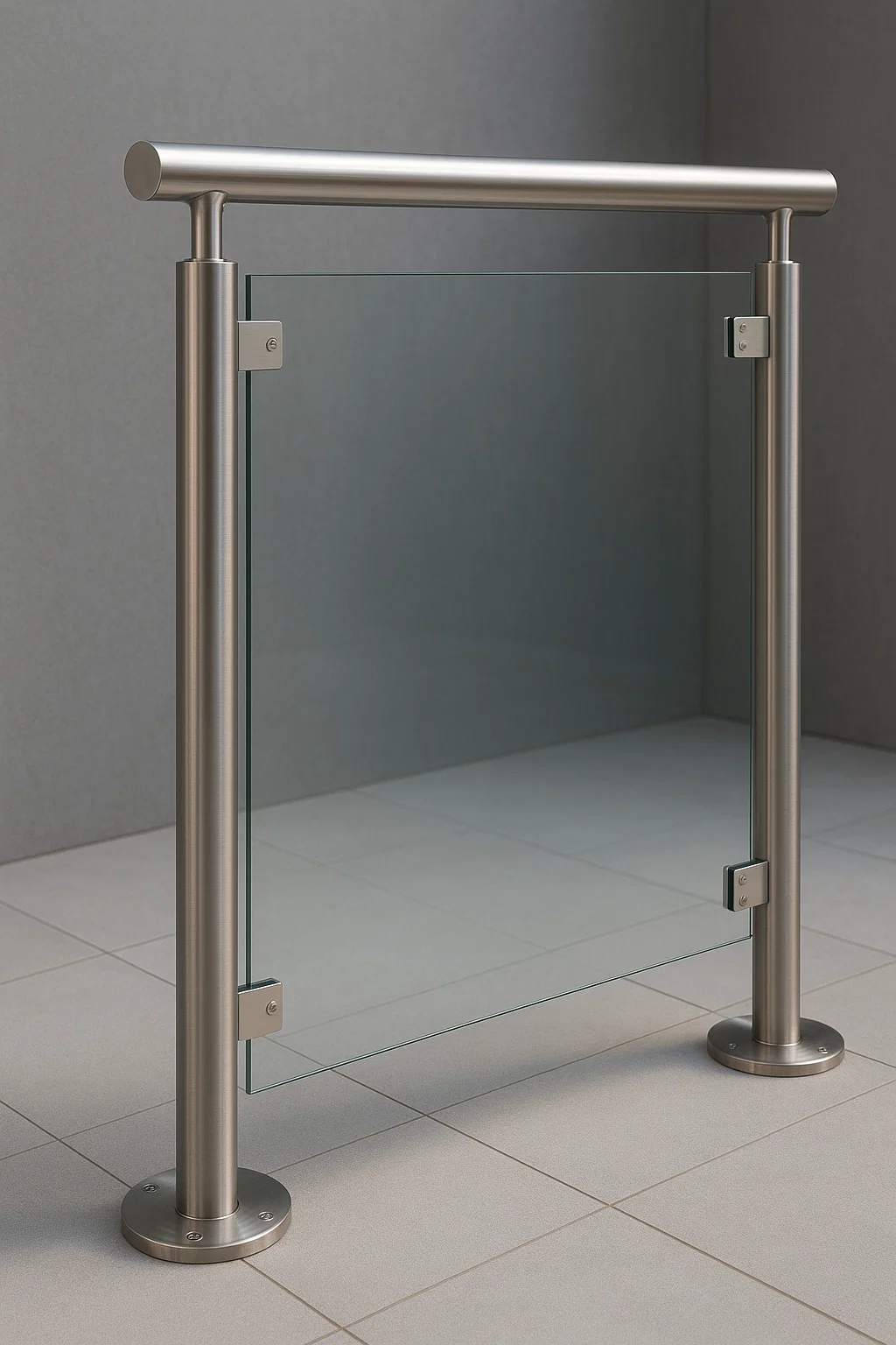 A stainless steel railing with glass is a protection and design system used in staircases, balconies, roofs, and corridors. It consists of: