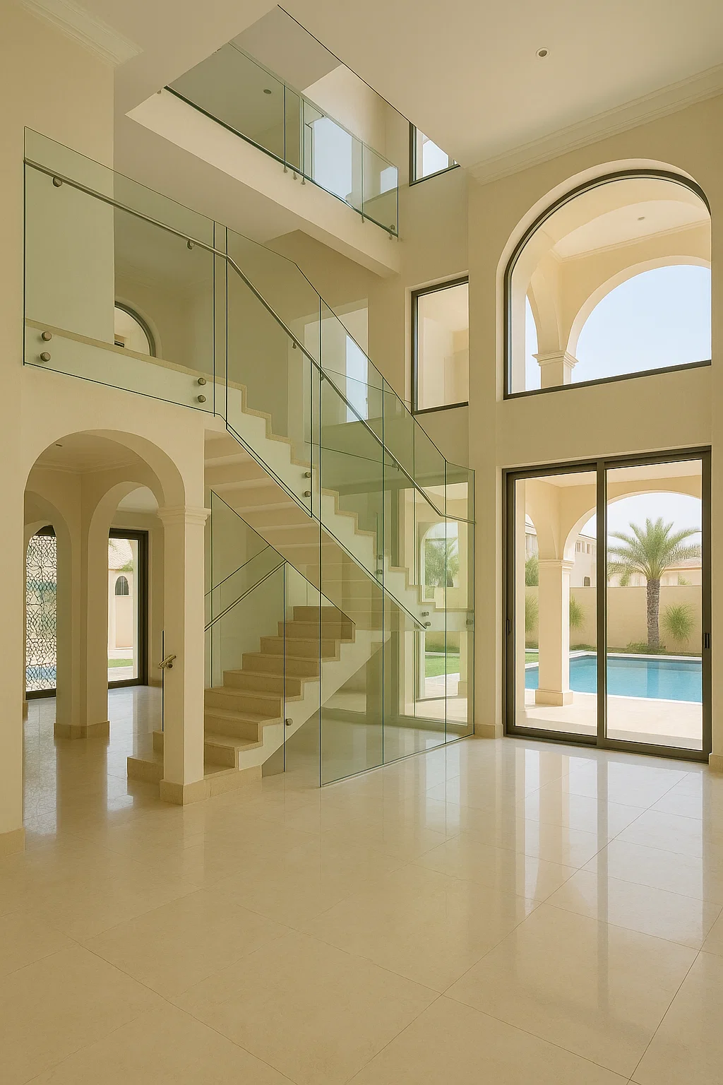 في السنوات الاخيرة تحولت الزجاج الداخلية للفلل الي عنصر اساسي السعودية ليس فقط لجمالها المعاصر بل لقدرتها علي تحسين الاضاءة الطبيعية و توسع الاحساس بالمساحة ورفع القيمة العقارية للمكان ومع تنوع الاذواق واتجاهات التصميم اصبح الزجاج خيارا ذكيا يجمع بين الفخامة والعملية والامان.