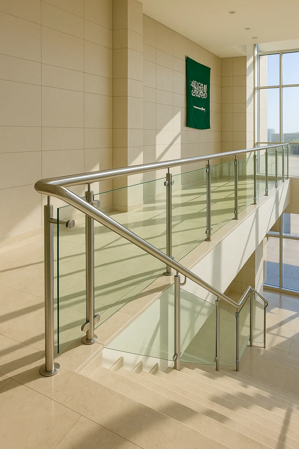 الدرابزين زجاجي داخلي في السعودية هو حاجز او سور مصنوع من الواح زجاجية مقواة يتم تركيبه داخل المبني مثل السلالم والشرفات الداخلية و الخارجية المساحة المفتوحة و اسعار كبائن الشاور والممرات يتم دكج الزجاج مع قواعج من الستانلس ستيل او الالمنيوم او الحديد لتوفير دعم قوي وعمر افتراضي اطول.