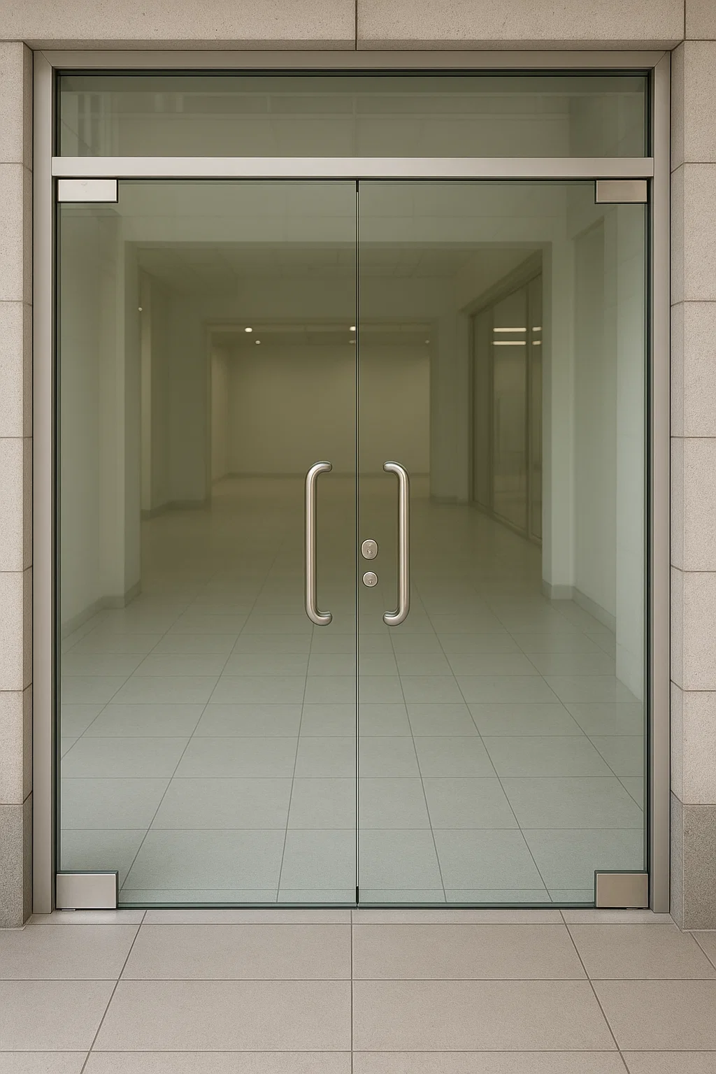 4- باب سيكوريت بزجاج مزدوج: يوفر عزلا اضافيا للصوت والحرارة ويمنح مظهرا فاخرا للمحلات التجارية.